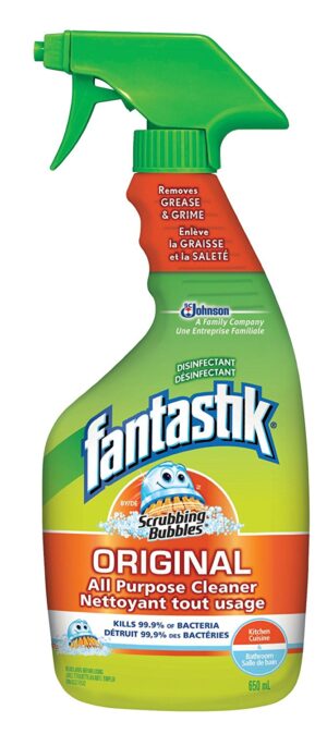 Fantastik is great for grease. One of the few products there is no acceptable generic substitute for, though Method makes a comparable “all-purpose cleaner” in a spray bottle.