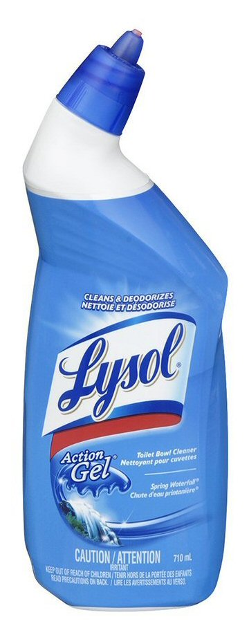 Toilet bowl cleaners come in a bottle with a crooked neck, as with the Lysol brand above. Any brand will do, including Toilet Duck or any generic or store brand.