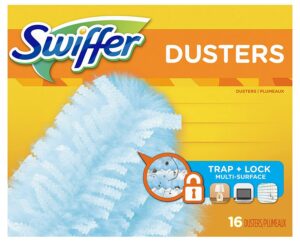 Swiffer dusters – I find generic and store brand versions aren’t as effective. Regular style is enough – no need for Heavy Duty or 360° version.